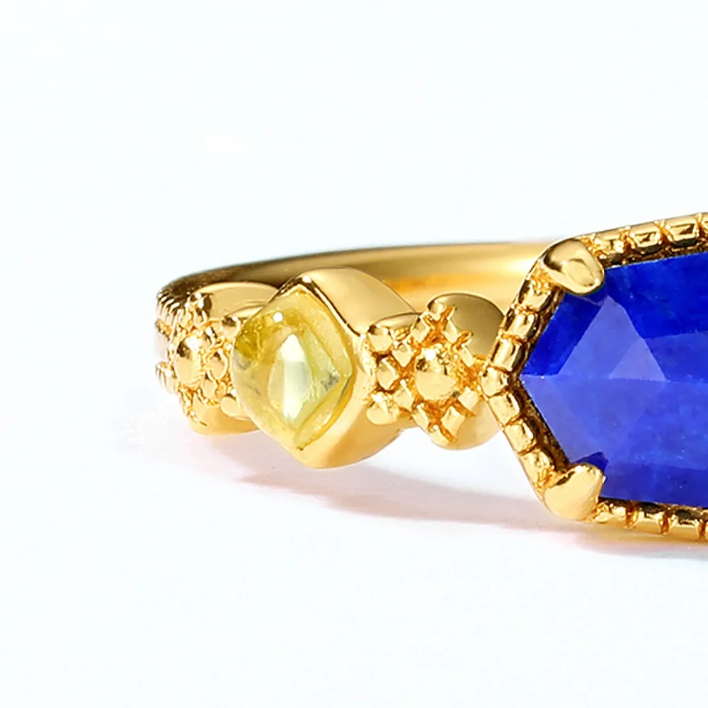 Кольцо ALLNOEL, массивное, 925 пробы, серебряное, ювелирное изделие, лазурит, перидот, натуральный драгоценный камень, регулируемое, настоящее позолоченное кольцо