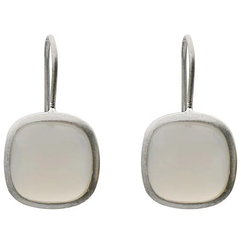 Серьги-клипсы женские, серебристые, квадратные, с натуральным камнем, для свадебной вечеринки, S92 5