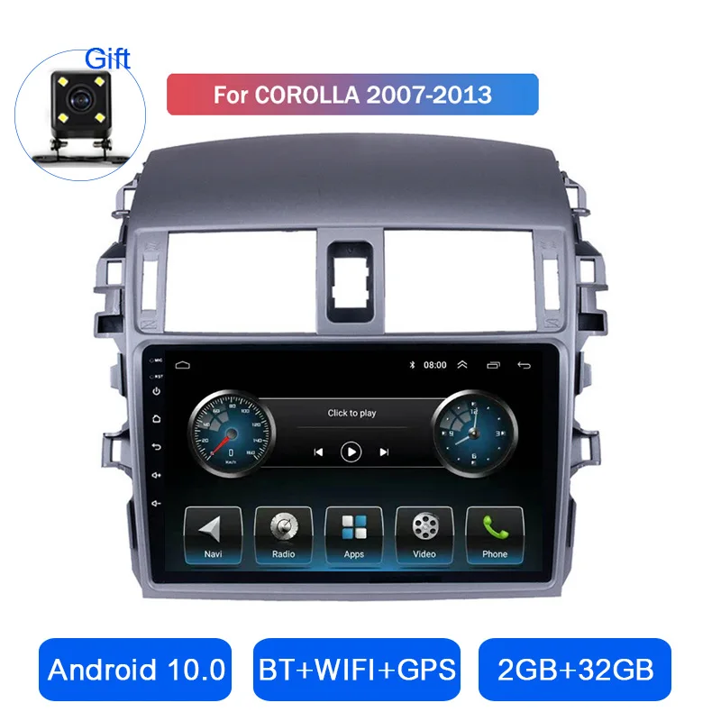 Мультимедийный видеоплеер на платформе Android 10 для Toyota Corolla 2007, 2008, 2009, 2010, 2011, 2012, 2013, с большим экраном