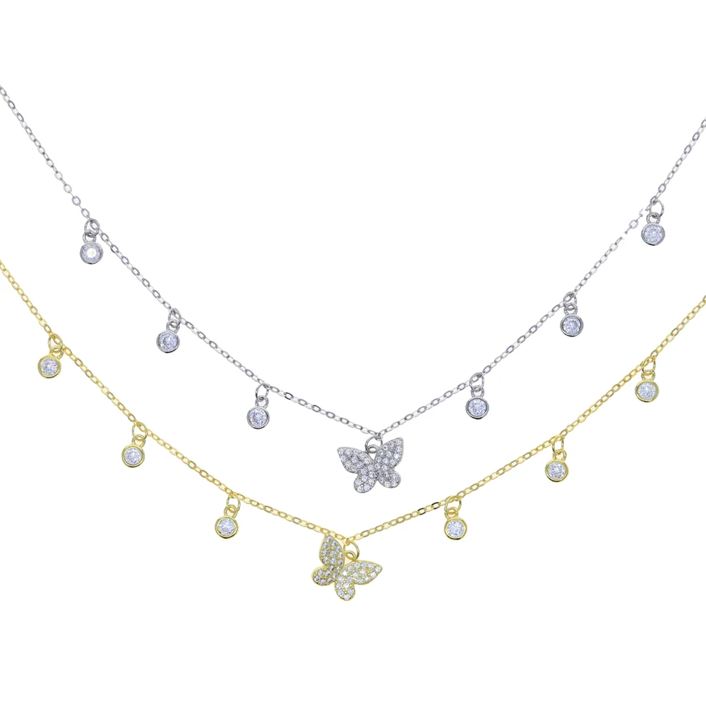 Милое симпатичное животное дизайн CZ Бабочка ободок с круглой CZ Очарование кисточкой для женщин ожерелье 925 серебро