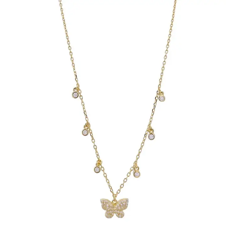 Женское Ожерелье с кулоном-бабочкой, маленькое покрытое золотом 14 ...