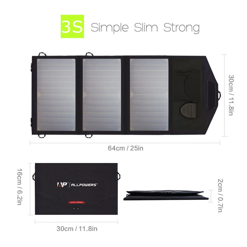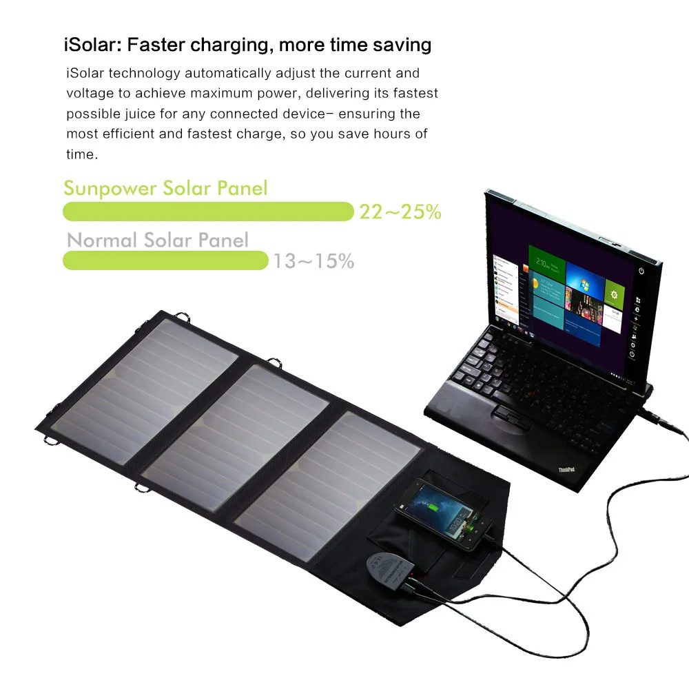 Портативное зарядное устройство ALLPOWERS портативное зарядное устройство от солнечной энергии с 5V USB 18V DC солнечный заряд батареи для телефонов на базе Android iOS iPhone iPad ноутбуки и так далее.