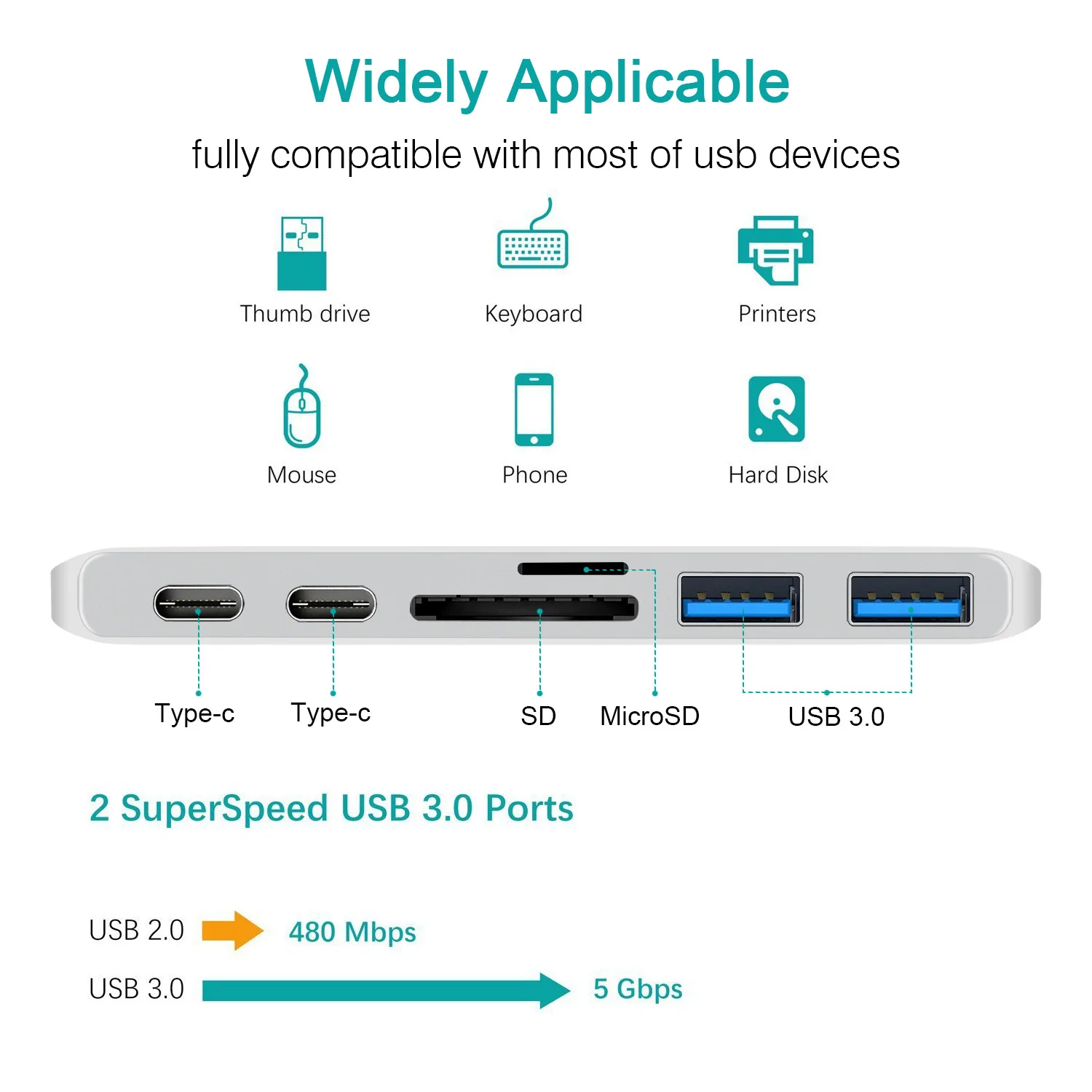 Feature 5usb type c hub