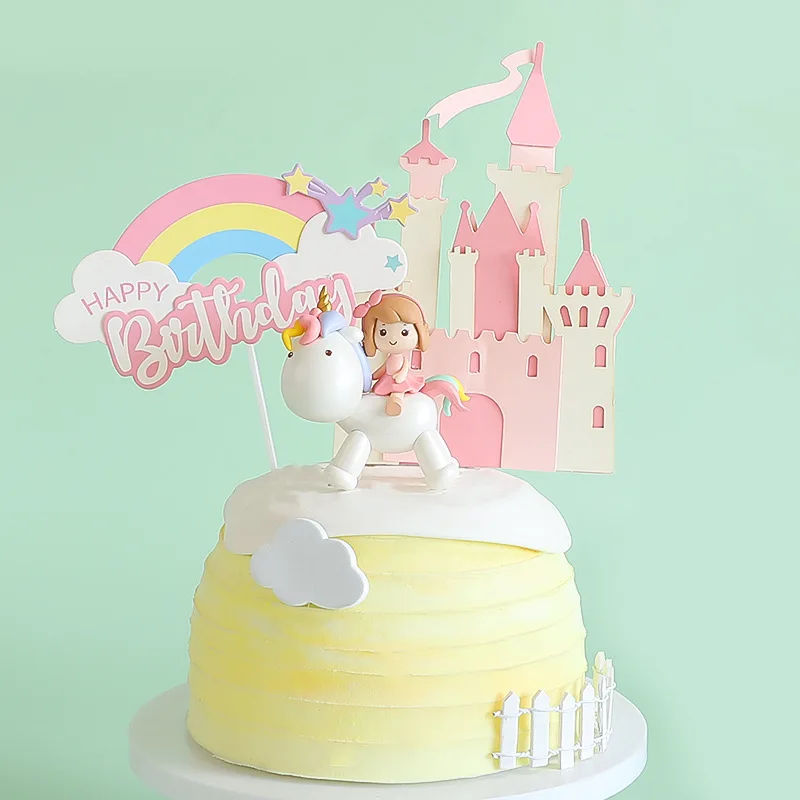 Топпер для торта с единорогом для девочек, украшение для торта на день рождения 1-й принцессы, декор кекса на день рождения, декор для дня рождения