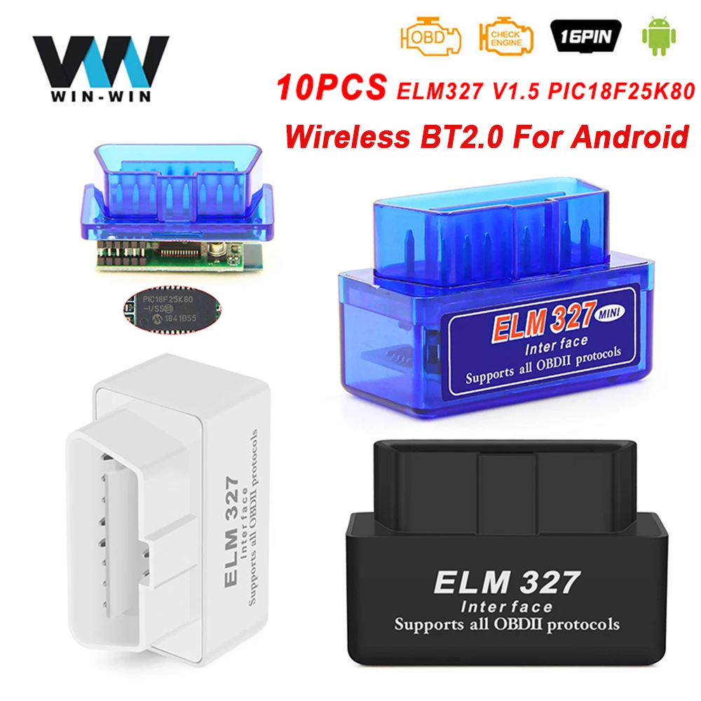 Автомобильный диагностический сканер ELM327 V1.5 с чипом PIC18F25K80, беспроводная Диагностика автомобиля, BT2.0, OBD2, для Android, 327 в, 1,5 OBD, OBD2, 10 шт.