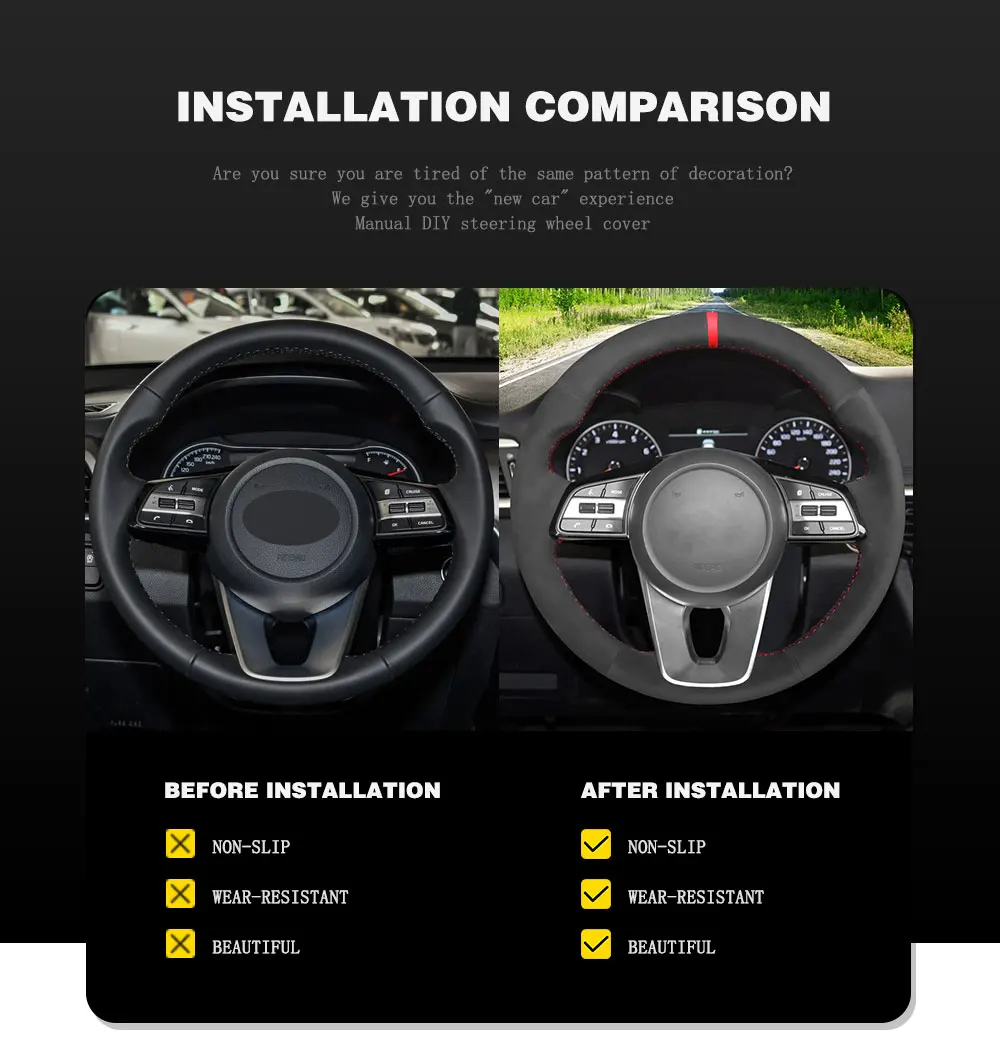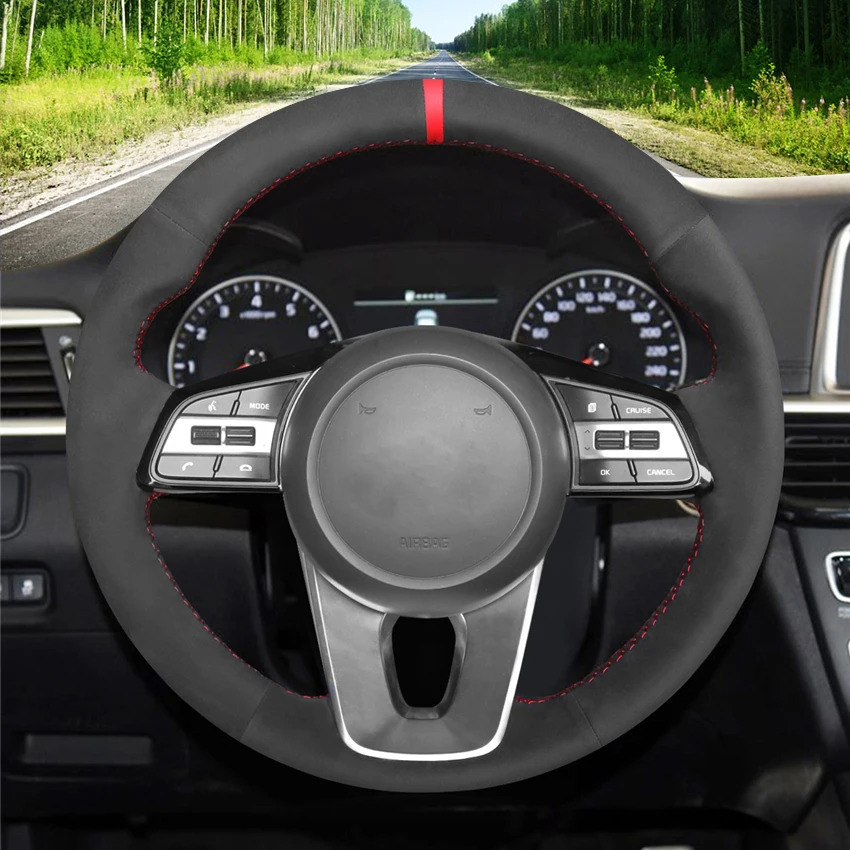 Мягкая и удобная крышка рулевого колеса из черной замши для Kia K5 ...