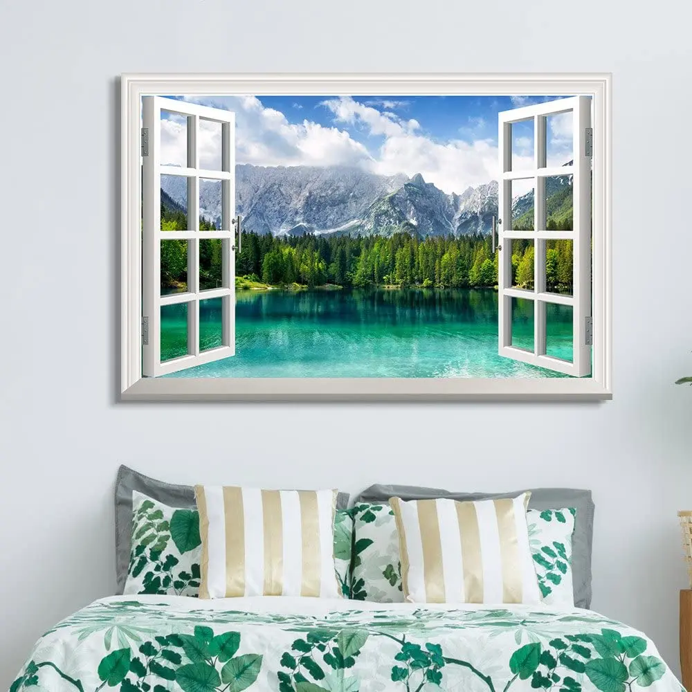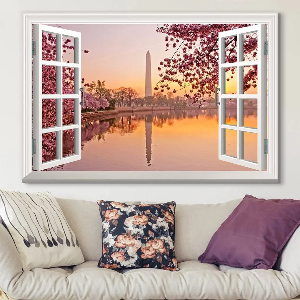 Постер на холсте, с изображением цветочного сада, пейзажа за окном