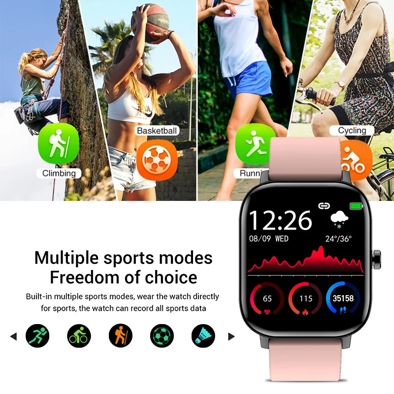 Поддержка звонков по Bluetooth. Прием/отклонение телефонного звонка. Воспроизведение музыки. Несколько циферблатов меняются. Информация о погоде. Отображение времени. Секундомер. Мониторинг сердечного ритма. Мониторинг Артериального/кровяного давления кислорода. Мониторинг сна. Напоминание о малоподвижности. Спортивный шагомер/потребление калорий/Запись трека/время упражнений. Напоминание о звонке и отображение. Сообщение выталкивается и отображается. Камера дистанционного управления. Автоматическое Измерение частоты сердечных сокращений. Мульти-спортивные измерения. Напоминание о часах. Фото рабочего стола DIY. Напоминание о тревоге.