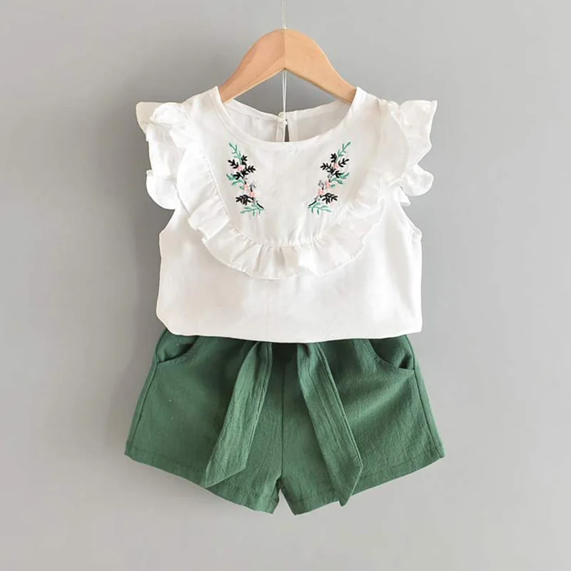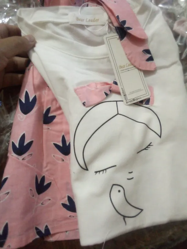 Bear Leaderкомплекты одежды для девочек, От 3 до 7 лет футболка с круглым вырезом и принтом Топ с повседневными короткими штанами, 2 предмета, одежда принцессы для детей