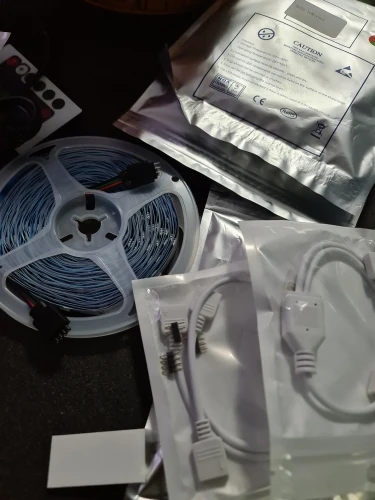 Он хорошо упакован и работает, все в ваших запечатанных сумках, в моем случае две упаковки 10 метров, плюс ваше управление Bluetooth, вилка и т. д. все отлично, рекомендую продавцу и продукт.