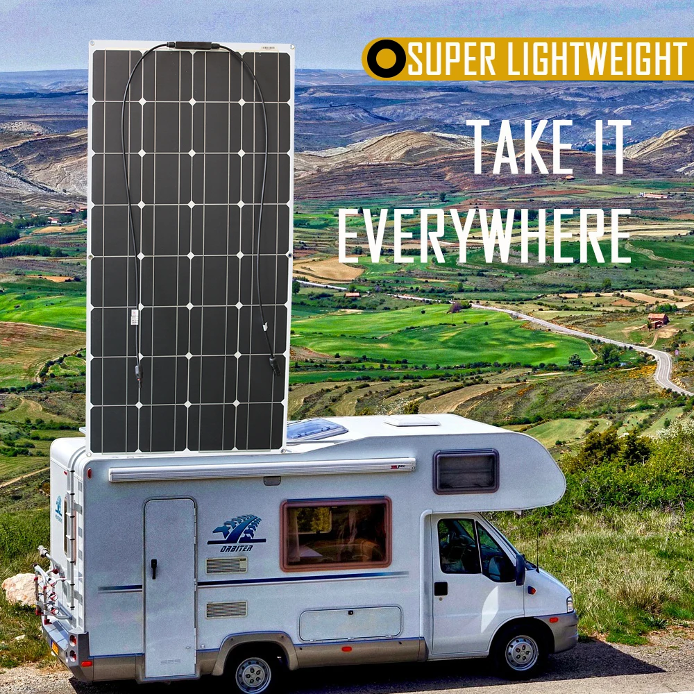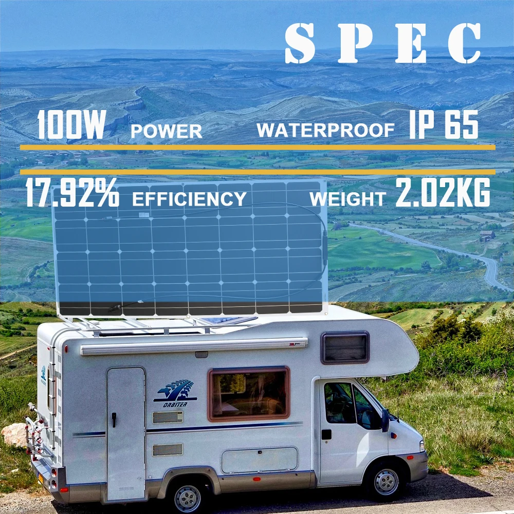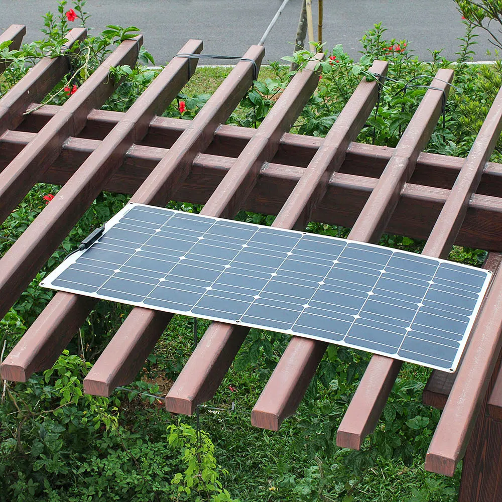 【Потенциал Uses】Гибкая монокристаллическая панель мощностью 100 Вт может использоваться в основном для использования вне сети, включая крышу, RV, лодки и любые пышные поверхности.【Чрезвычайно гибкий 】Эта панель способна удовлетворить широкий спектр применений, где Стандартные панели могут быть неудобны для крепления, например, на изогнутой крыше airstream.【Ультралегкий Вес 】Благодаря передовым полимерным материалам, этот продукт весит на 70% меньше, чем обычные солнечные панели, что делает транспортировку и установку ветерком.【Супертонкая ламинация 】Почти не заметная, легкая панель 100 Вт, уложенная на плоской подошве, составляет всего десятую от сантиметра, что делает ее идеальной для скрытой солнечной установки.