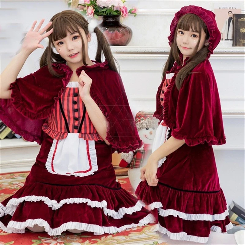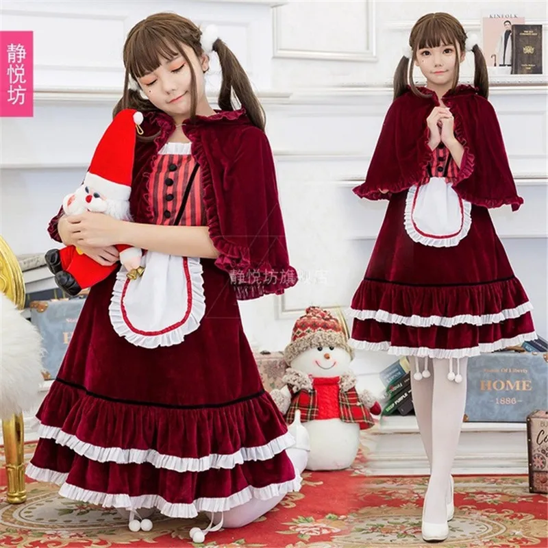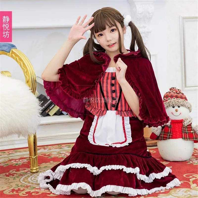 Женский костюм Деда Мороза для косплея, красное бархатное платье, Униформа горничной для рождевечерние НКИ, наряд для взрослых и женщин, модные платья