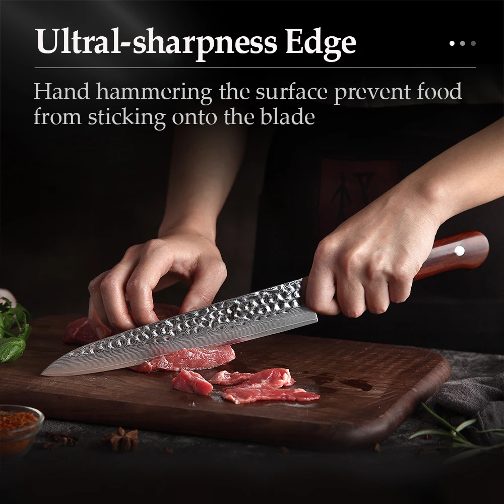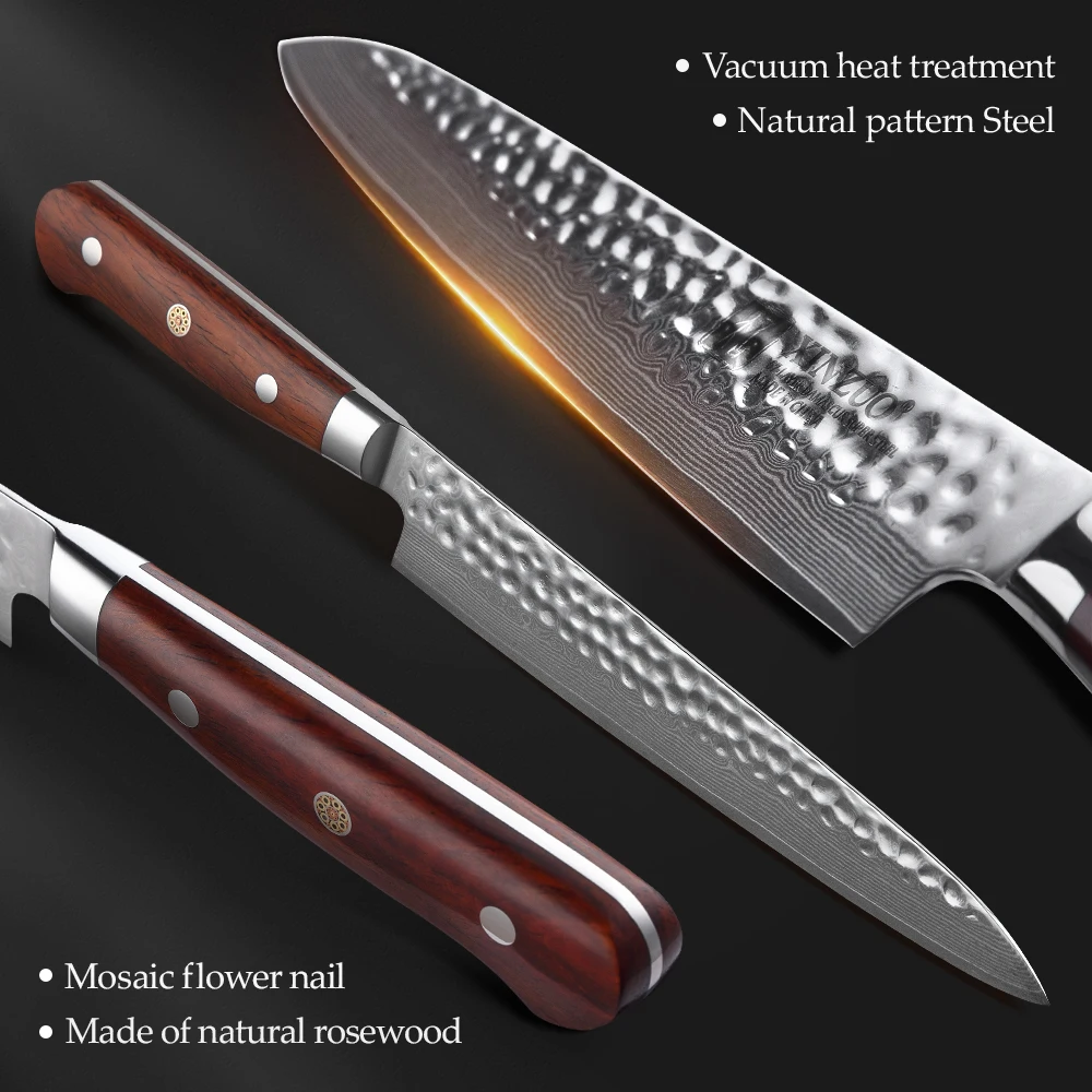 Ножи XINZUO из дамасской стали, 7 дюймов, с ручкой из розового дерева