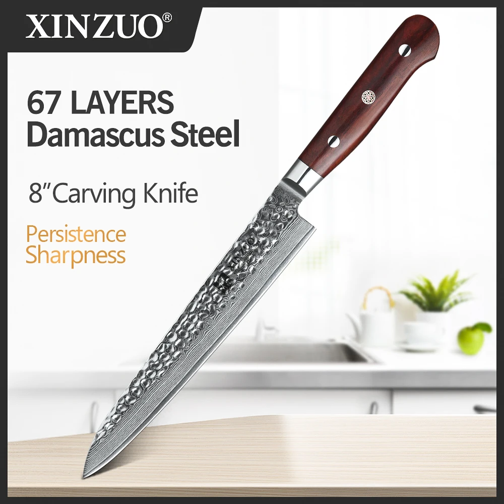 Нож для резьбы XINZUO 8 дюймов, кухонный из дамасской стали с рукоя...