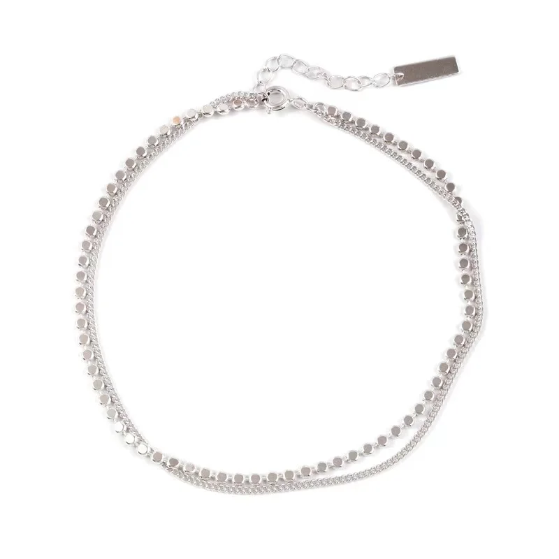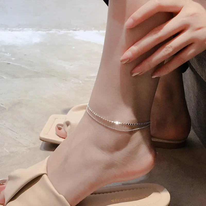 Браслет на ногу Женский, двухслойный, асимметричный, серебристый