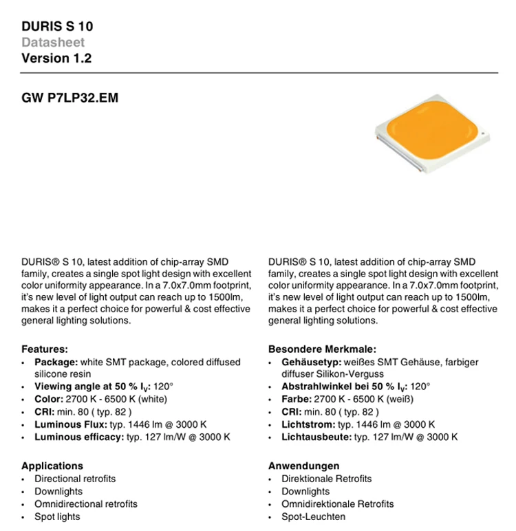 Duris S10 GW p7lp32,cm/GW P7LM32.EM светодиодный параметр свойства: