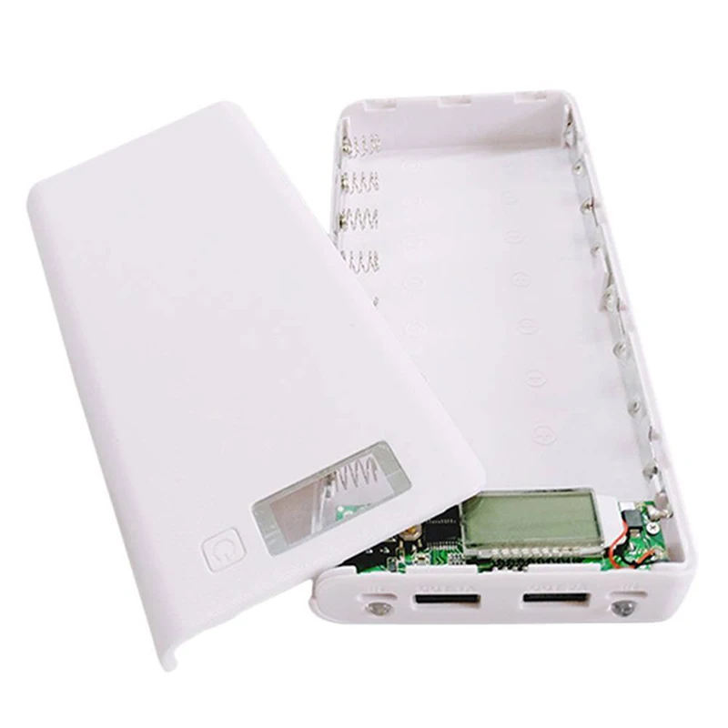 Материал-Изготовлен из прочного и пригодного для носки пластика, а также с противоскользящей поверхностью.DIY-съемная и свободная пайка конструкция, питание от 18650 внешних аккумуляторных батарей, вы можете сделай сам.Фонарик-со сверхсильными светодиодными лампами, которые необходимы для путешествий и кемпинга.Цифровой трубчатый дисплей-Точное отображение мощности, Поддержание состояния батареи в любое время.Применение-подходит для различных моделей мобильных телефонов, замена разных линий также может быть MP3, MP4, цифровые камеры, планшетные ПК и другие продукты для достижения зарядки.Примечание-обратите внимание, что в этом заказе нет аккумулятора, только чехол для внешнего аккумулятора.Характеристики:Тип товара: чехол для электростанции «сделай сам»Тип: Бесплатная пайкаЦвет: белый/черный/синийПорт: 2 USBТип CИсточник питания: 7 батарей 18650 (не входят в комплект)Мощность: мАВход: 5 в-2а (Длительное нажатие кнопки переключателя 2А входа)Выход: 5 в-1a/2.1AОсобенности: экран дисплея/светодиодный фонарикМатериал: пластикКомплектация: