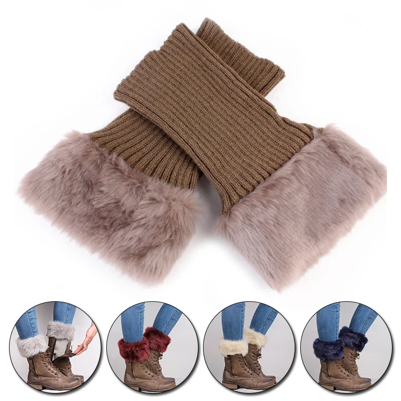 Осенне-зимние женские трикотажные манжеты для ботинок, верхняя одежда, меховые вязаные теплые гетры, носки для ботинок, Короткие гетры для ног, Рождественский подарок
