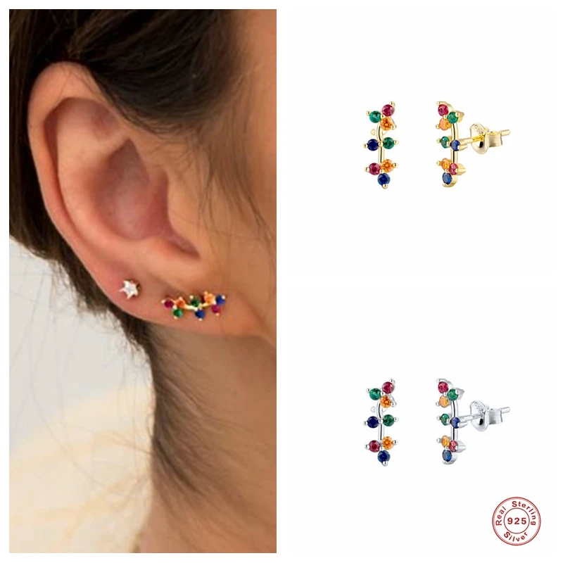 Серьги-гвоздики женские из серебра 925 пробы, с радужным цирконием