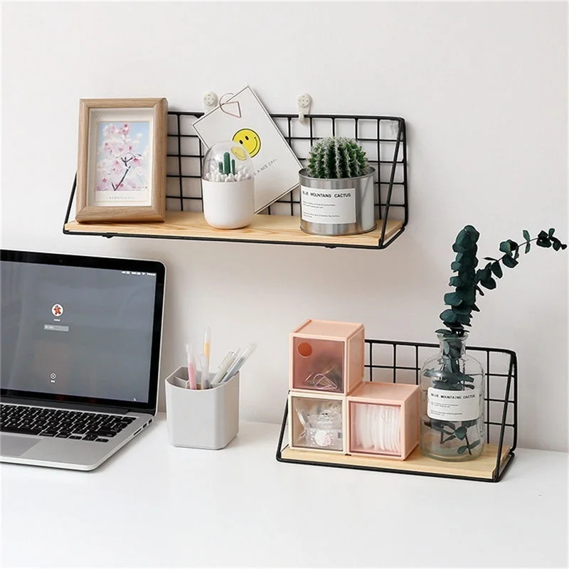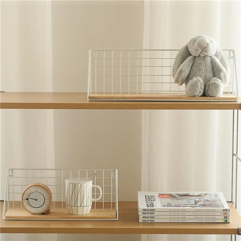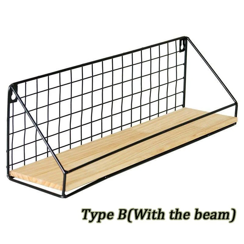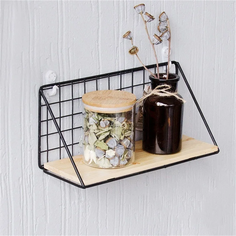 Подвесная корзина для хранения, черная железная сетчатая деревянная доска, стеллаж для хранения, настенный держатель для украшения мелочей, для кухни, дома, современный