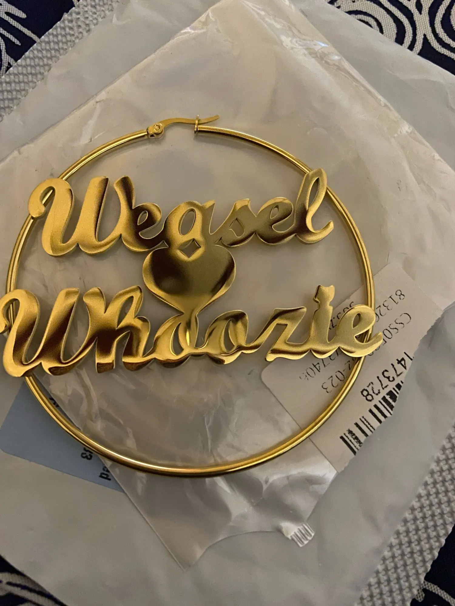 Only one of the two names are attached to the earrings. I fear it might break off easily