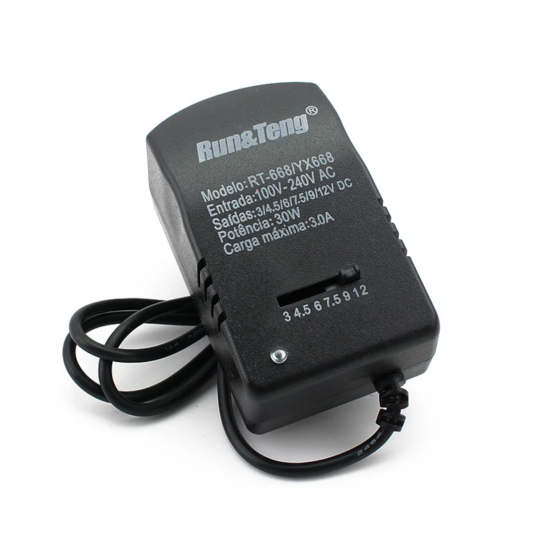 Входная мощность: 100- 240 В, переменный ток. 50-60 ГцВыходная мощность: 3,0/4,5/6,0/7,5/9,0/12 В постоянного токаВстроенный фильтр EMI класса BТекущий рейтинг: 3000 мА макс.