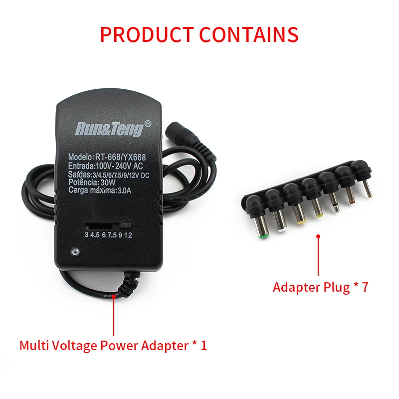Регулируемый адаптер питания, зарядное устройство переменного тока от 220 В до 12 В постоянного тока, 9 В, 6 в, 7,5 в, 5 В, 3 в, адаптер преобразователя, вилка 7, 3 А, 30 Вт, ЕС, США