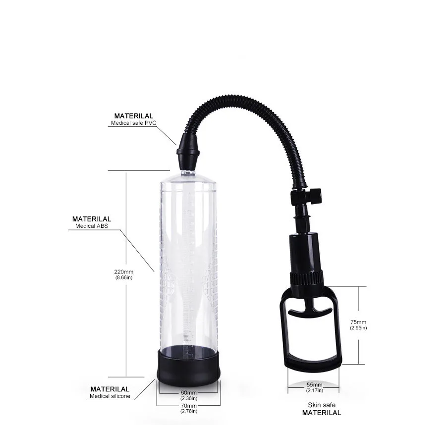 Особенности:Простое применение позволяет использовать в вашем собственном доме или в любой частной зоне.Придайте вашей уверенности в себе, самооценке и улучшите ваши отношения.Насос использует воздух для увеличения размера вашего пениса.Цилиндр крепится к мягкой резиновой втулке.Просто поместите этот рукав поверх вашего пениса, а затем равномерно прокачивайте вручную.Когда лампа перекачивается, воздух вытягивается из цилиндра, создавая вакуум.Этот вакуум помогает втягивать больше крови в пенис, укрепляя ткань и вызывая эрекцию.Вакуум расширяет ткань и приводит к увеличению размера пениса.Материал: АБС-пластик + силиконЦвет: прозрачный + черныйРазмер: как на картинкеГарантия конфиденциальности:Ваша конфиденциальность очень важна для нас. Мы обещаем отправить ваши продукты в секретном состоянии, упаковка без каких-либо фотографий и слов о сексе.Вес: 290 гМатериал: безопасные с медицинской точки зрения кремния, ABS, ПВХФункция: помогает расширить ваш пенис, чтобы получить увеличение и больше! Помогите вам быть сильным человеком!