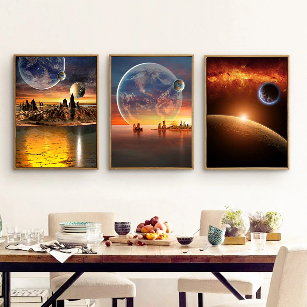 Плакаты и принты для украшения дома, звезды, планеты, космос, горы, шелковая живопись, картины для гостиной