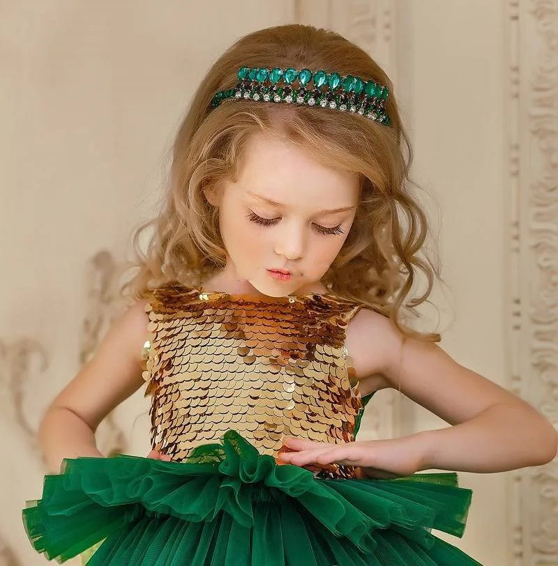 Индивидуальные Зеленые фатиновое платье с золотыми блестками для ма...
