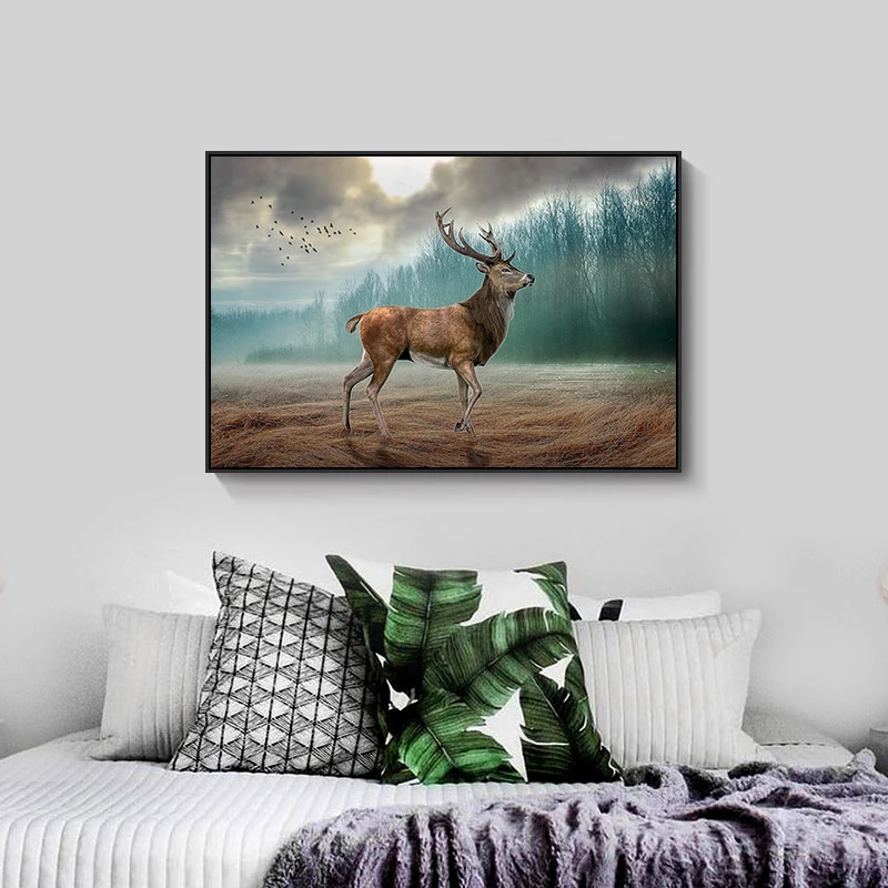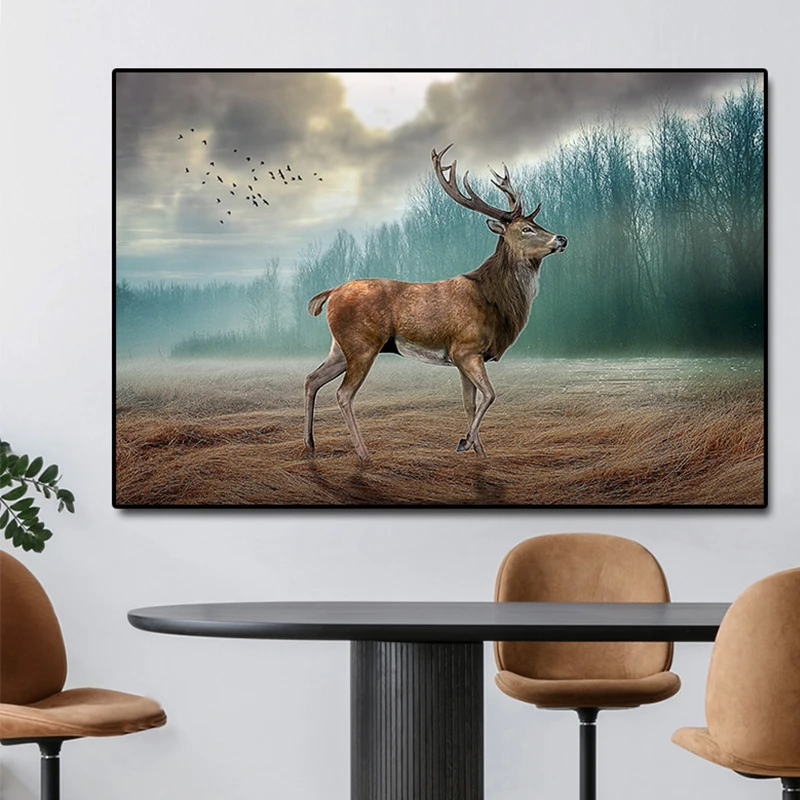 Настенный плакат с изображением лесного оленя, рисунок оленя на холсте