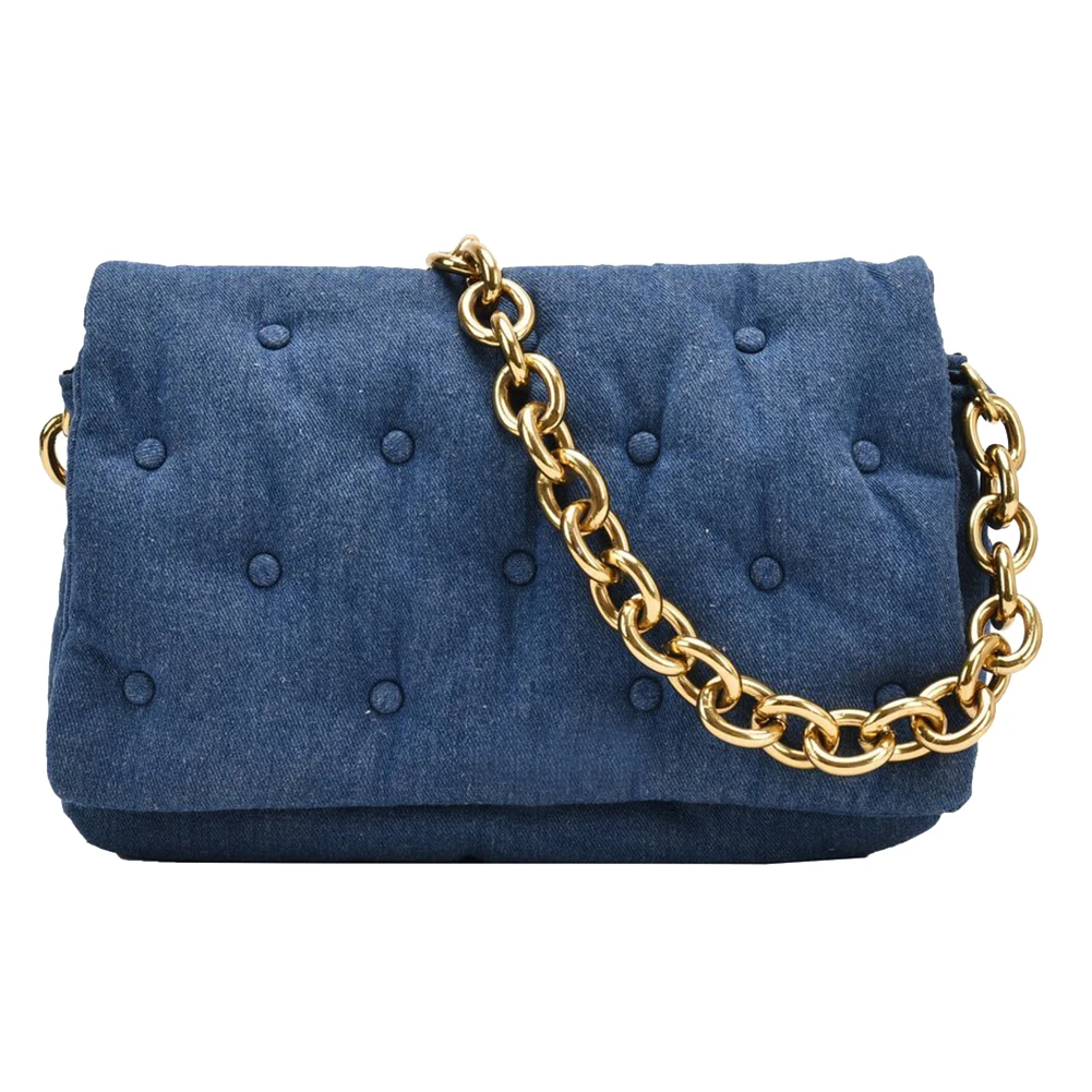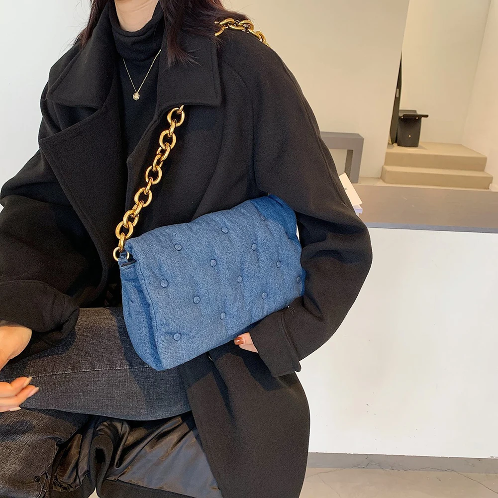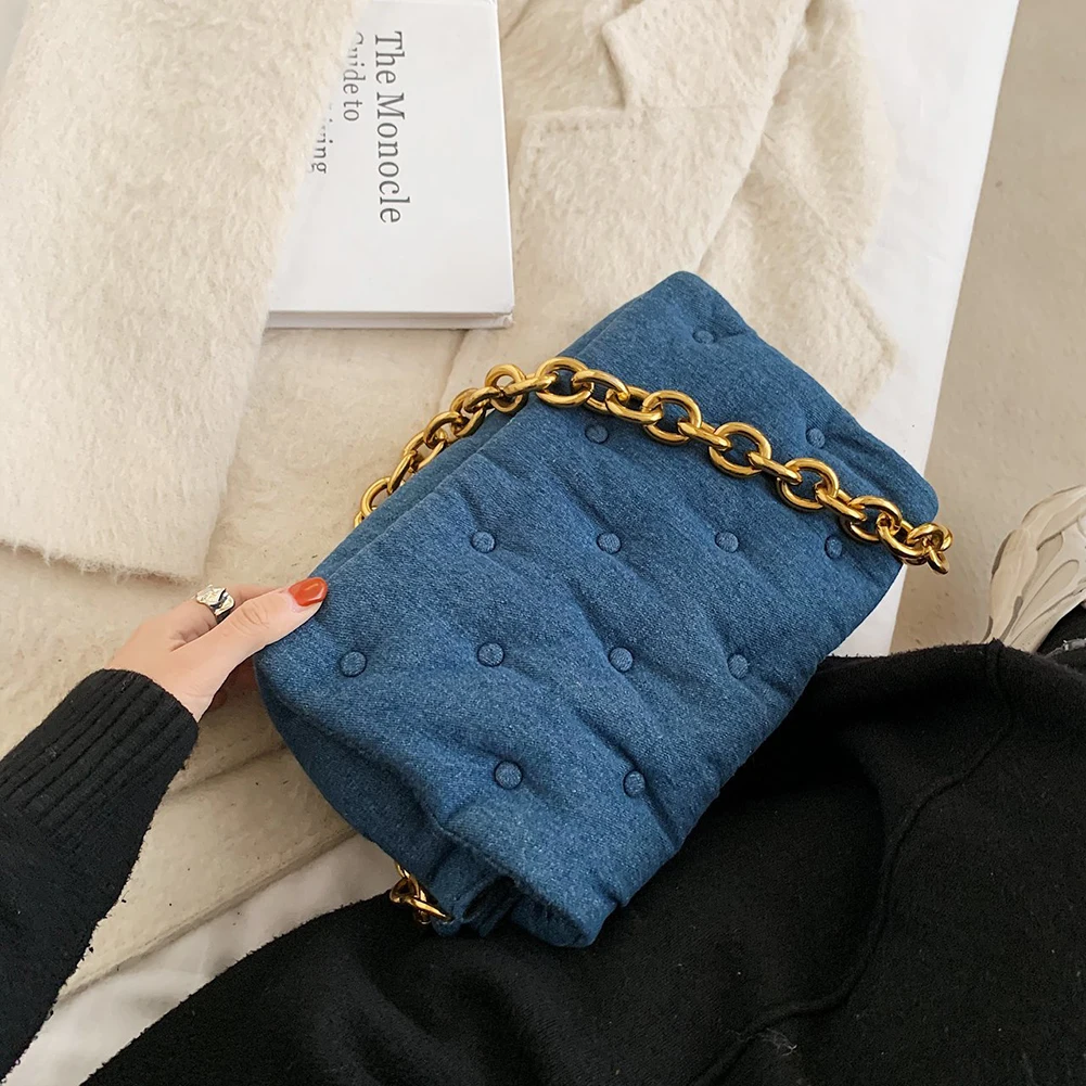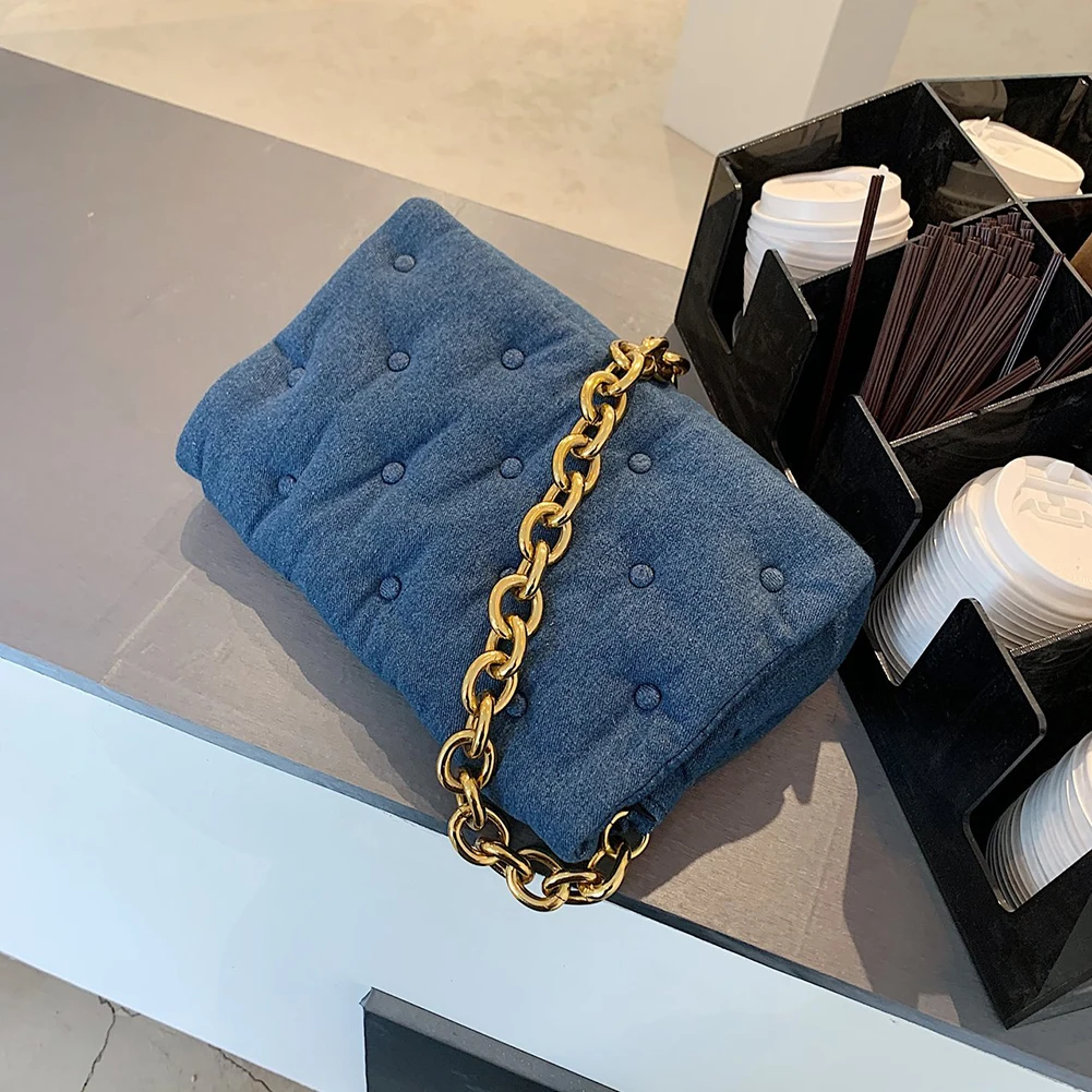 Дизайнерская Женская Джинсовая сумочка для подмышек, золотистая Толстая сумка на цепочке, ковбойская мягкая флодная сумка на плечо, 2021