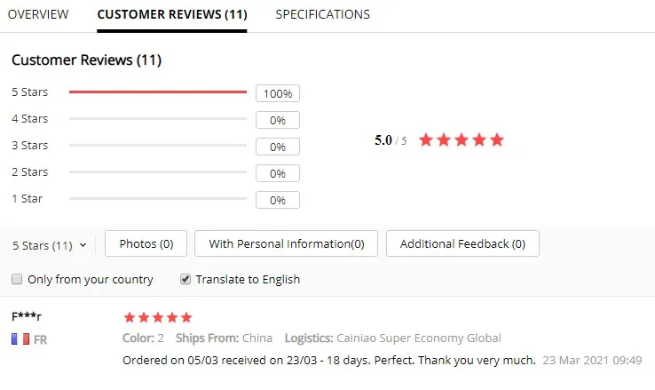 Страна: FR Color: 1 Ships From: China Доставка: Cainiao Super Economy Global 17.01.2022
