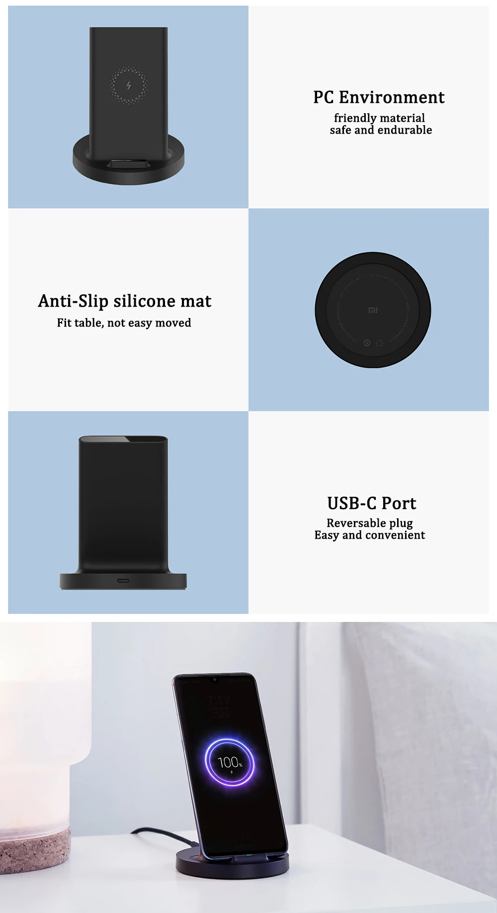 Вертикальная Беспроводная подставка для зарядного устройства Xiaomi, зарядка со вспышкой мощностью 20 Вт, Qi совместимость, несколько безопасных для смартфонов iPhone, Samsung, Xiaomi