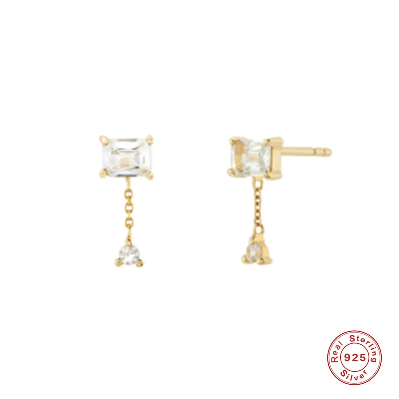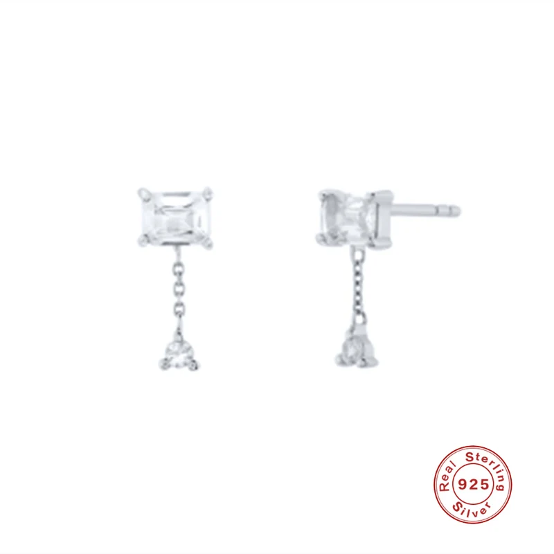 Женские прямоугольные серьги-гвоздики из стерлингового серебра 925 пробы с треугольным кристаллом и цепочкой, свадебные ювелирные изделия