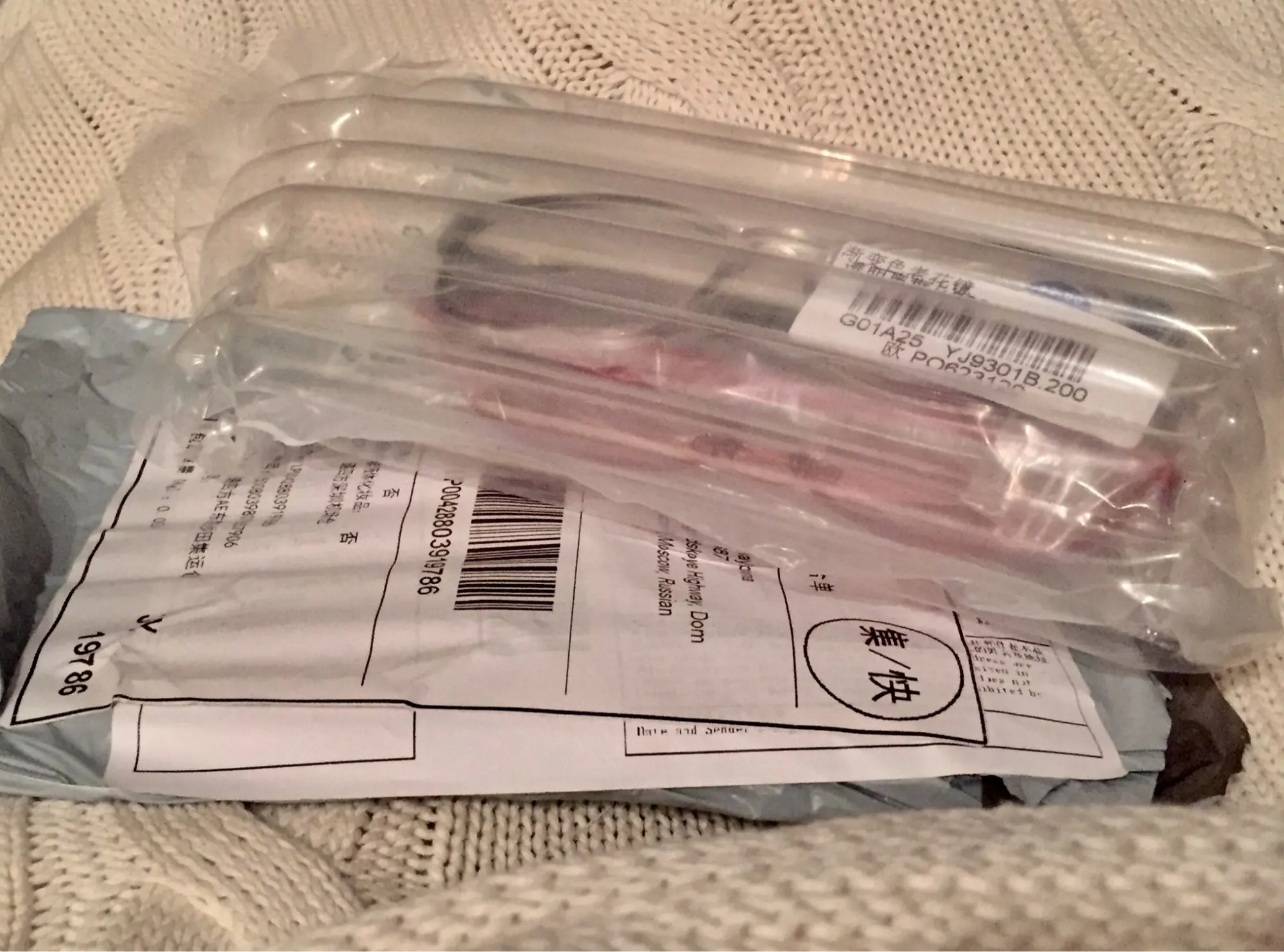 Страна: KZ Frame Color: Red Eye Prescription: +250 Доставка: Cainiao Super Economy Global 10.03.2021
