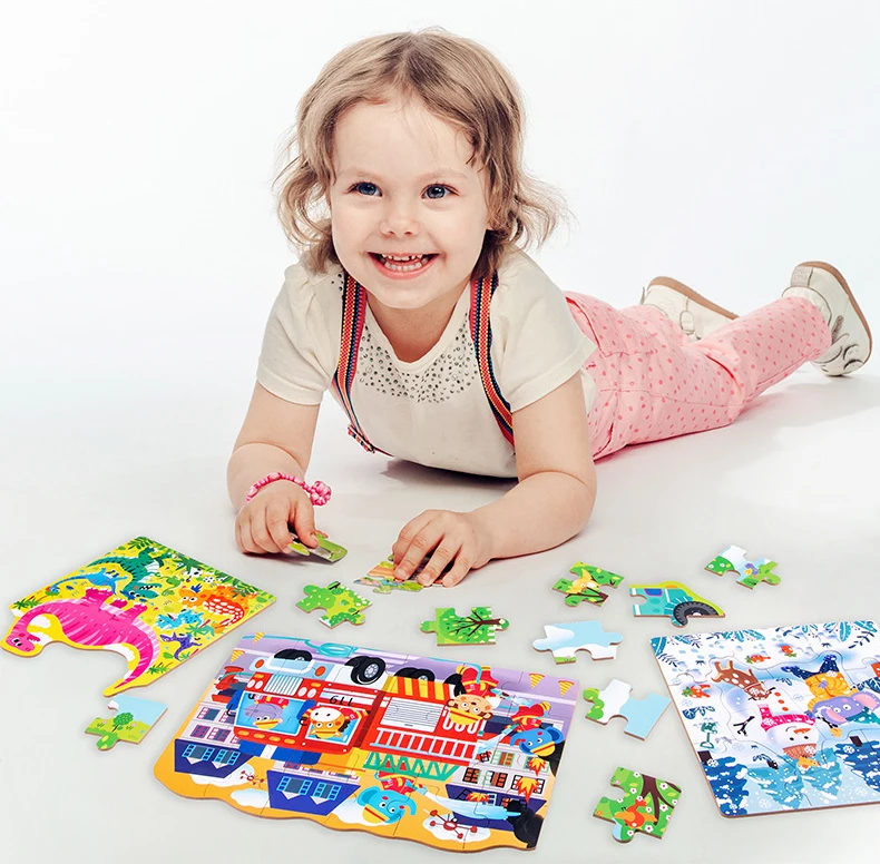 Детская деревянная Веселая Головоломка четыре в одном, Детский развивающий большой динозавртрафикчетыре сезона, 3D головоломка, игрушка для детей