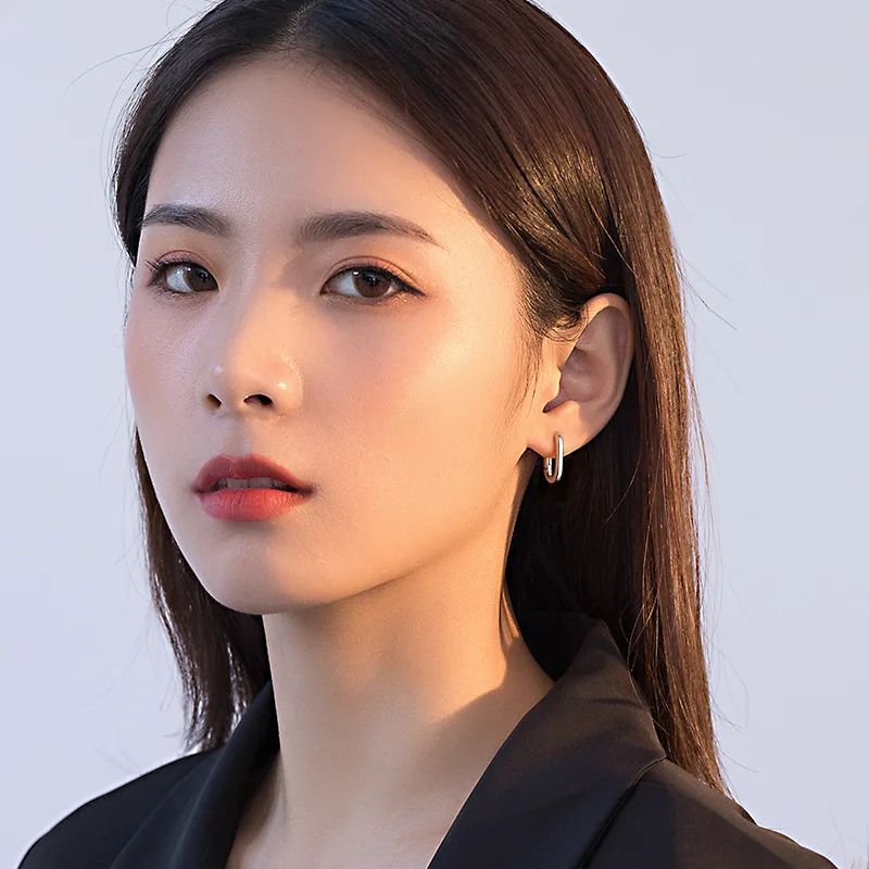 LouLeur 925 подковы из стерлингового серебра овальные серьги золотого цвета в винтажном стиле; С геометрическим рисунком Творческий простые шикарные серьги для женщин, ювелирное изделие, подарок