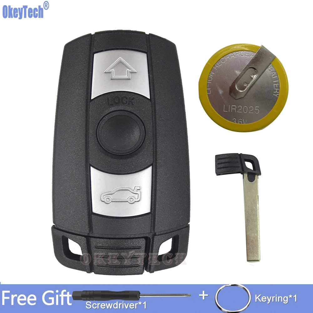 Корпус для дистанционного автомобильного ключа OkeyTech с 3 кнопками для BMW E60, E90, E92, E70, E71, E72, E82, E87, E88, E89, X5, X6, для 1, 3, 5, 6 серии, чехол для ключей