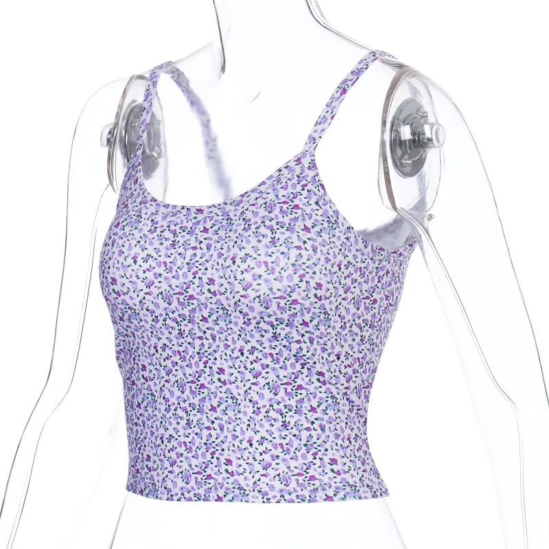 Топ женский с цветочным принтом, укороченный топ на бретелях-спагетти, пикантная зеленая повседневная майка без рукавов, аксессуар для альбома, бренди, на лето