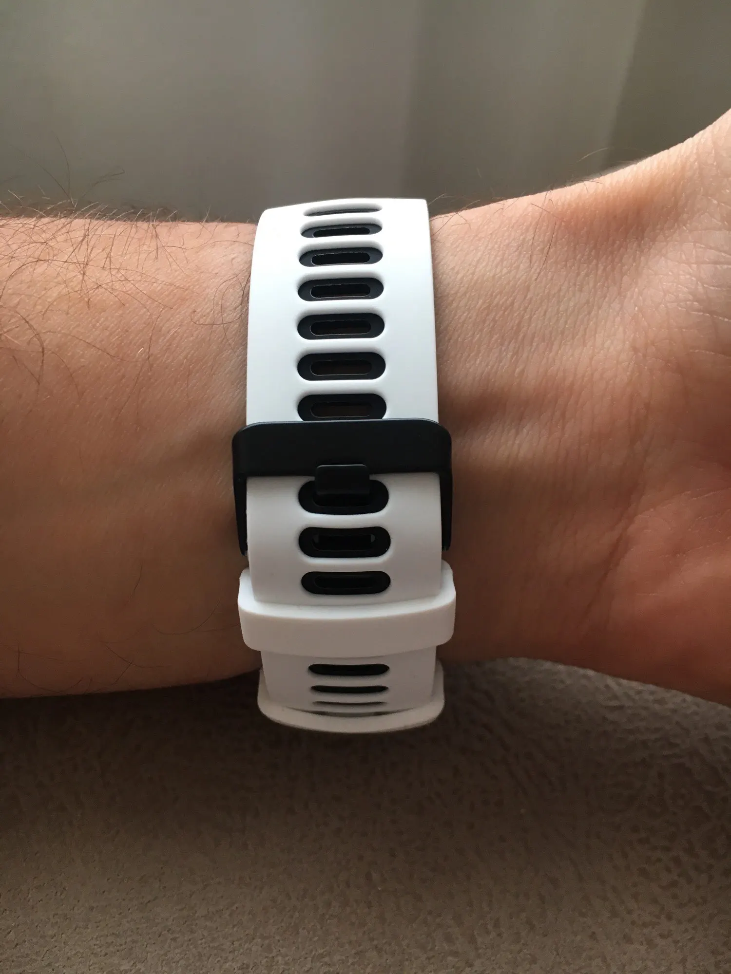 Хороший ремешок для часов, очень быстрая доставка. Имейте в виду, что для garmin forerunner (mine is a 935) маленькие шпильки в ремне для наручных часов слишком маленькие и хрупкие, ремешок для часов не остается включенным, таким образом, вам нужно удалить их и форсировать существующие столбы garmin через отверстие в ремнях для наручных часов-он только почти не подходит. Таким образом, вы должны тщательно зафиксировать ремешок на месте, нет быстрой замены. Также имейте в виду, что первые несколько дней ремешок действительно пахнет.