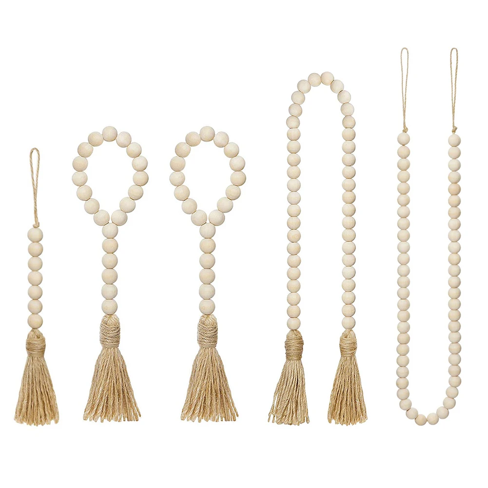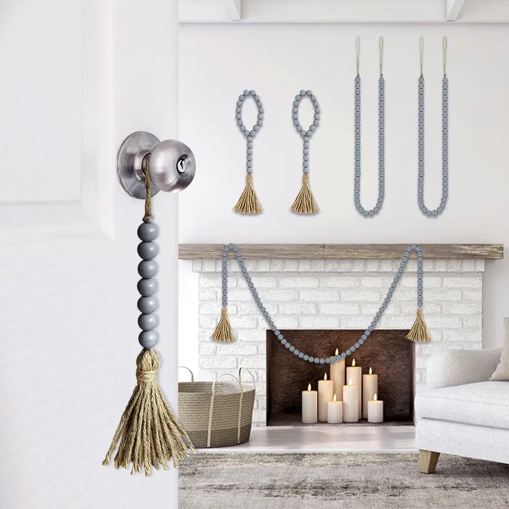 Деревенский декор, деревянная гирлянда из бусин, Рождественский Декор, ремесла, деревенский Декор на Рождество, стиль бусины для украшения с кисточками