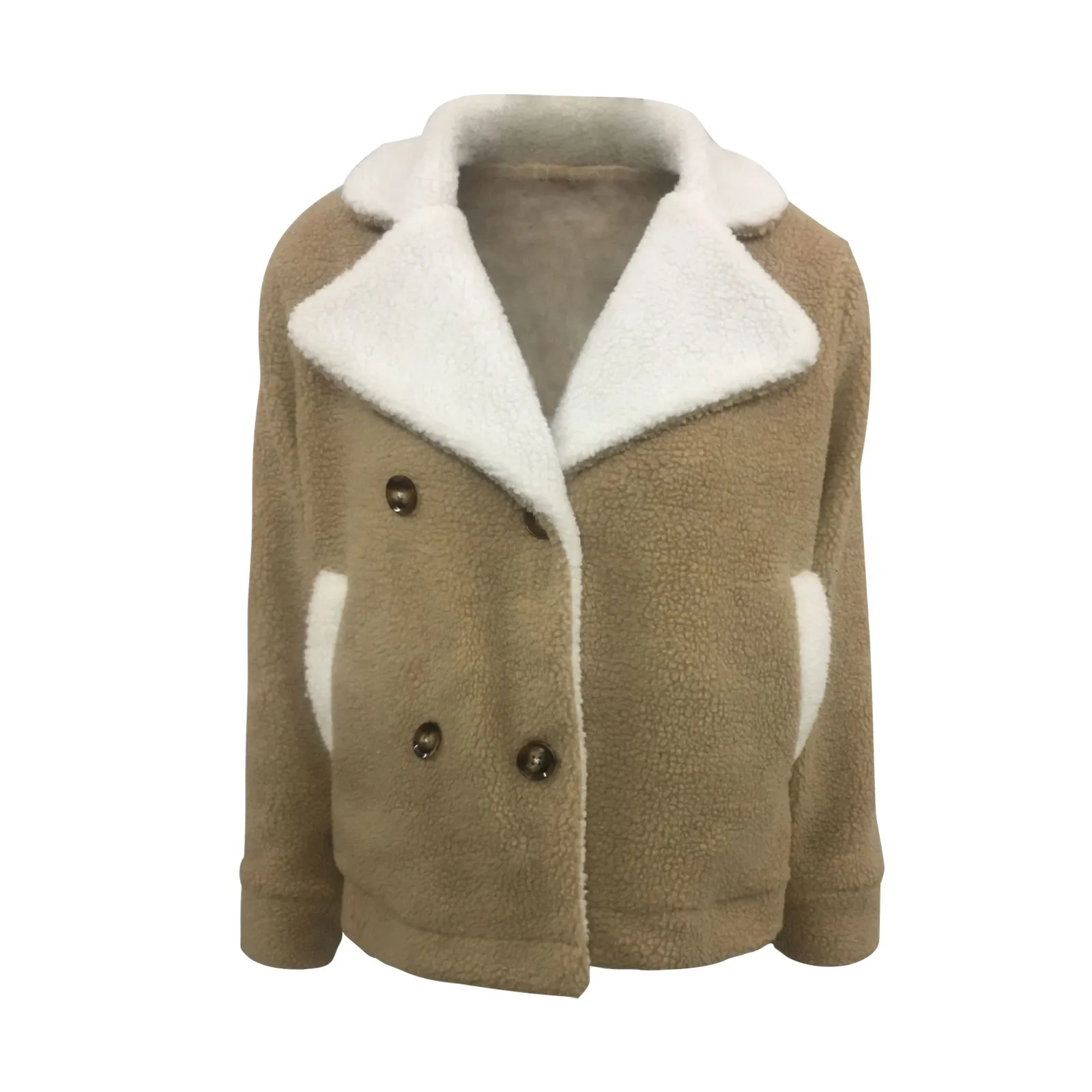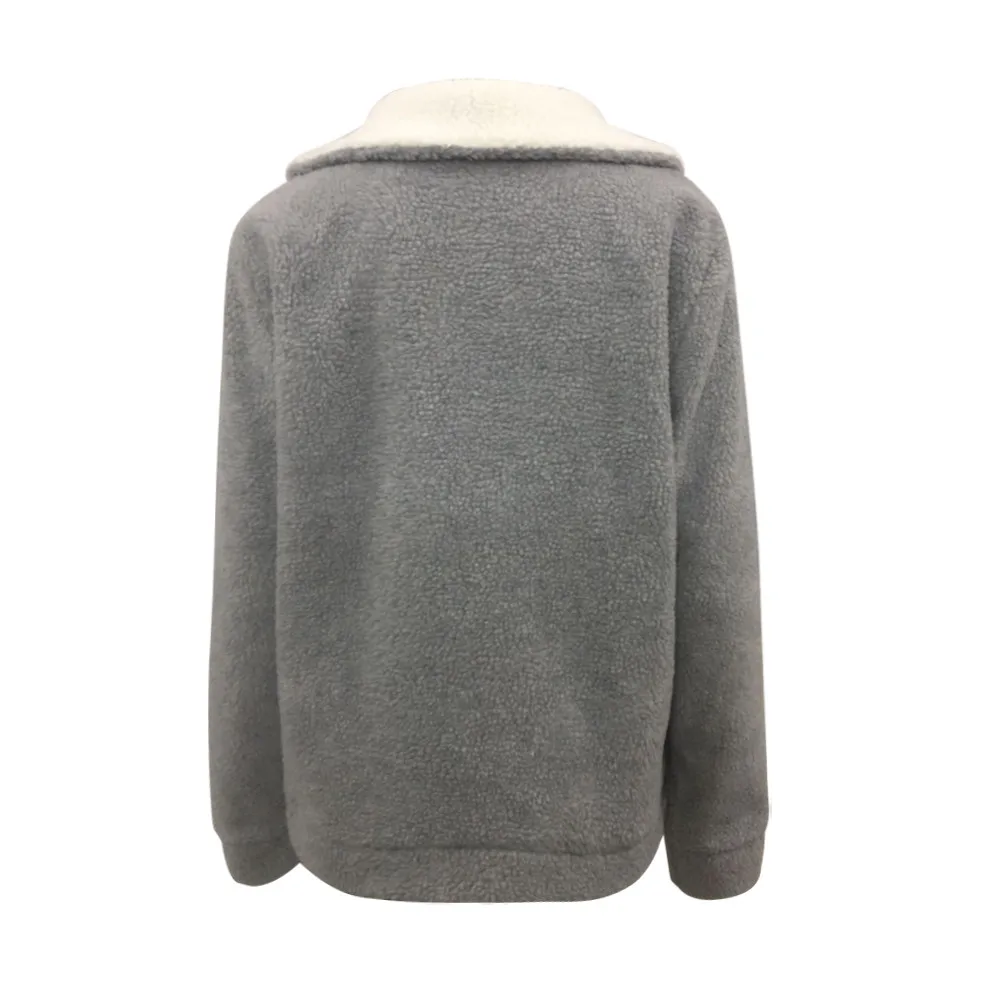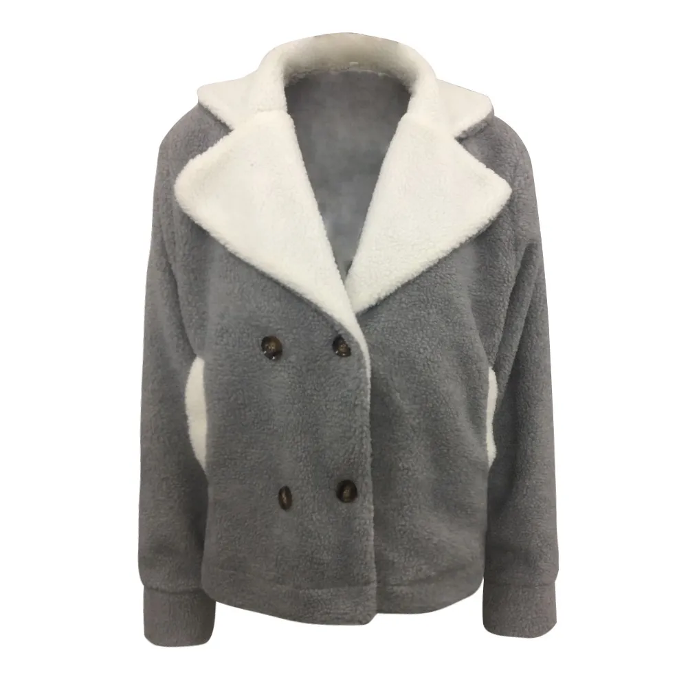 Модные женские контрастные теплые куртки с большими лацканами, кардиган с пуговицами плюшевое пальто