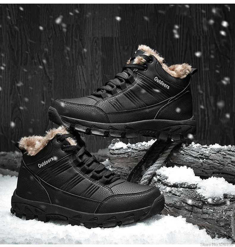 Мужские водонепроницаемые походные ботинки из натуральной кожи, уличные спортивные кроссовки, зимние ботинки для снега, теплая плюшевая обувь для пеших прогулок и трекинга