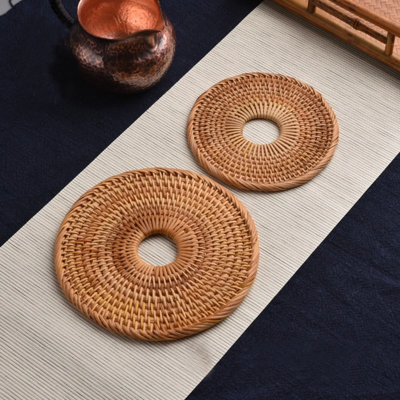 Круглая подставка из ротанга 1 шт., Изоляционные Коврики для чайника, коврики для чашек, кухонный Декор