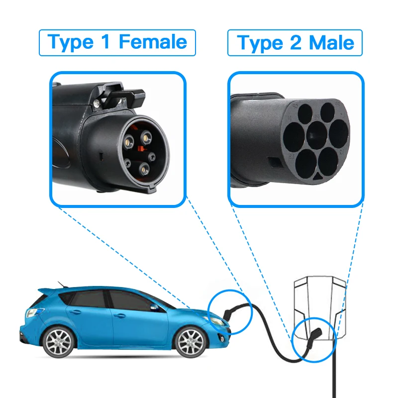 Один конец подключается к зарядной станции, один конец подключается к автомобилю