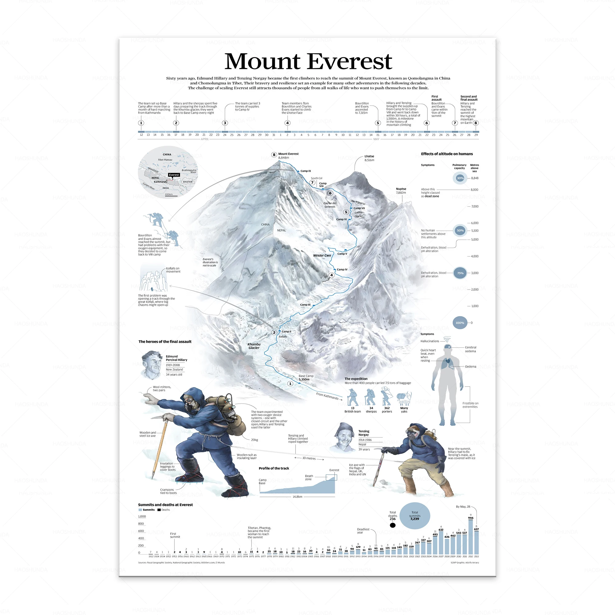 HD печать современный модуль картина монтирование Everest Infographic художественный плакат на холсте Печать домашняя комната настенный Декор Рамка для картин
