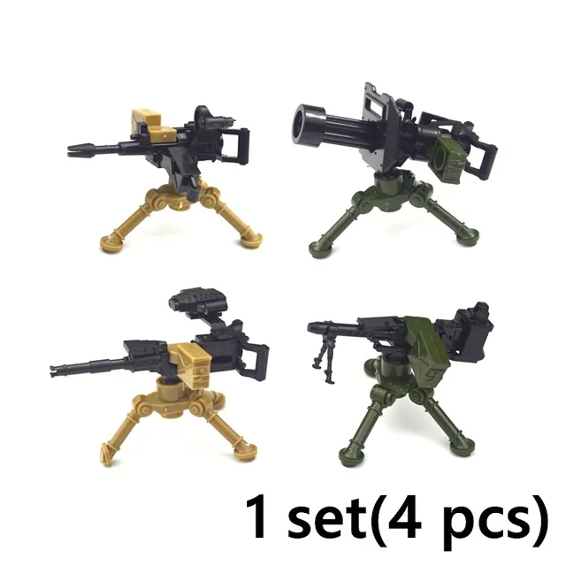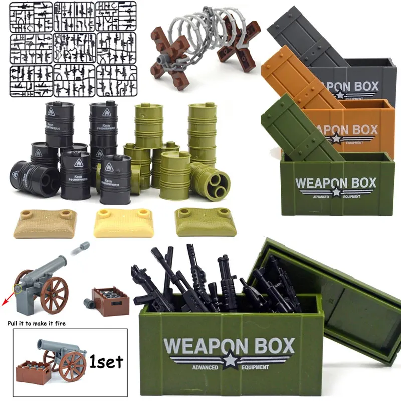 Набор строительных блоков для военной сцены, оружие, мешок с песком...