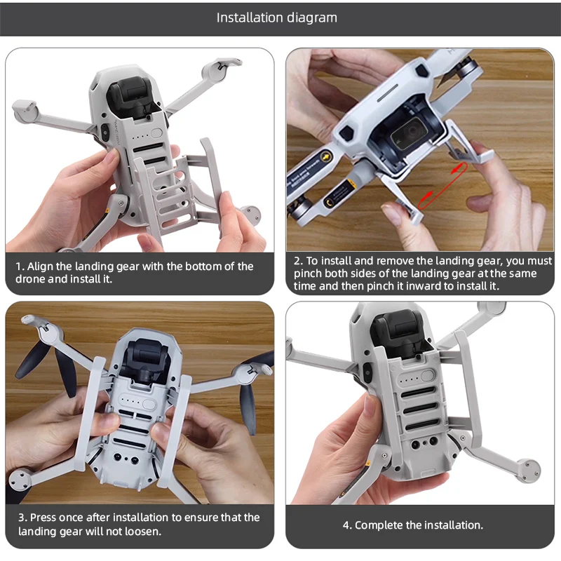 1. Увеличьте высоту между фюзеляжем и землей, чтобы защитить мини-турмалы 2/SE и батареи от воздействия на посадку,2. Эффективно предотвращает заземление мусора от загрязнения тела или повреждения карданного шарнира во время взлета и посадки,3. Для эффективного увеличения 2,2 см в высоту4. Чрезвычайно прочный и легкий,5. Легко разбирается и легко устанавливается.Описание:Материал: АБС-пластикПрименимые модели: для Mavic Mini/Mini 2/SEЦвет: серыйВес нетто: 9,3 гРазмер изделия: 8,7*7,2*3,5 смУпаковочный лист:1 шт. шассиПримечание:1. Не включает Дрон, во время установки, пожалуйста, разверните руку перед установкой шасси, и, пожалуйста, снимите посадочную шестерню перед складыванием руки.2. Перевод ед. измерения: 1 см = 10 мм = 0,39 дюйма,3. Допускается погрешность в 1-3 мм из-за ручного измерения. Пожалуйста, убедитесь, что вы не возражаете перед заказом,4. Из-за разницы между различными мониторами изображение может не отражать фактический цвет товара, пожалуйста, убедитесь, что вы не возражаете перед заказом, спасибо!