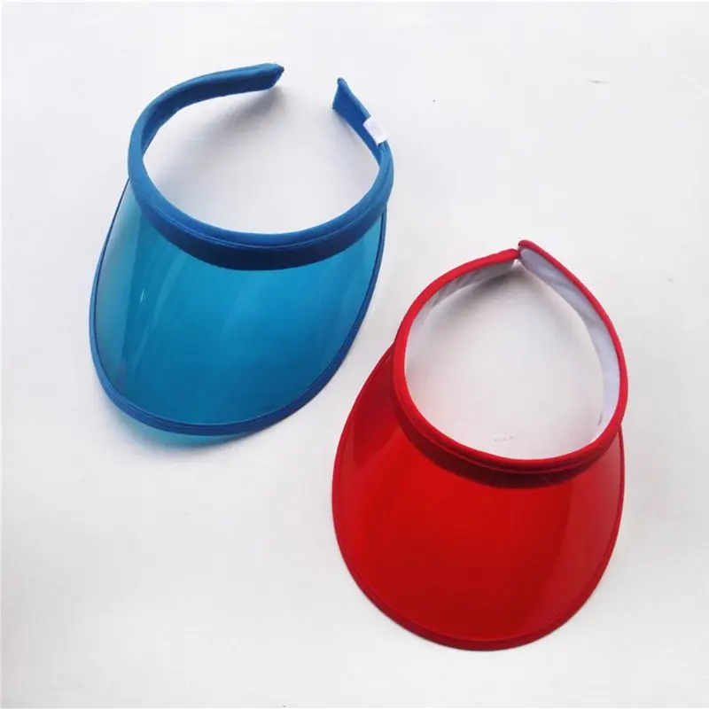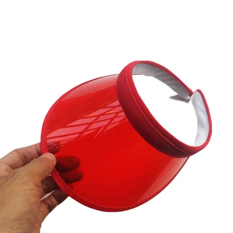 Прозрачная пластиковая панель, яркие цвета, сплошной цвет, уплотненная полоса для пота, регулируемый размер козырька, стиль клип. 10 цветов на выбор.